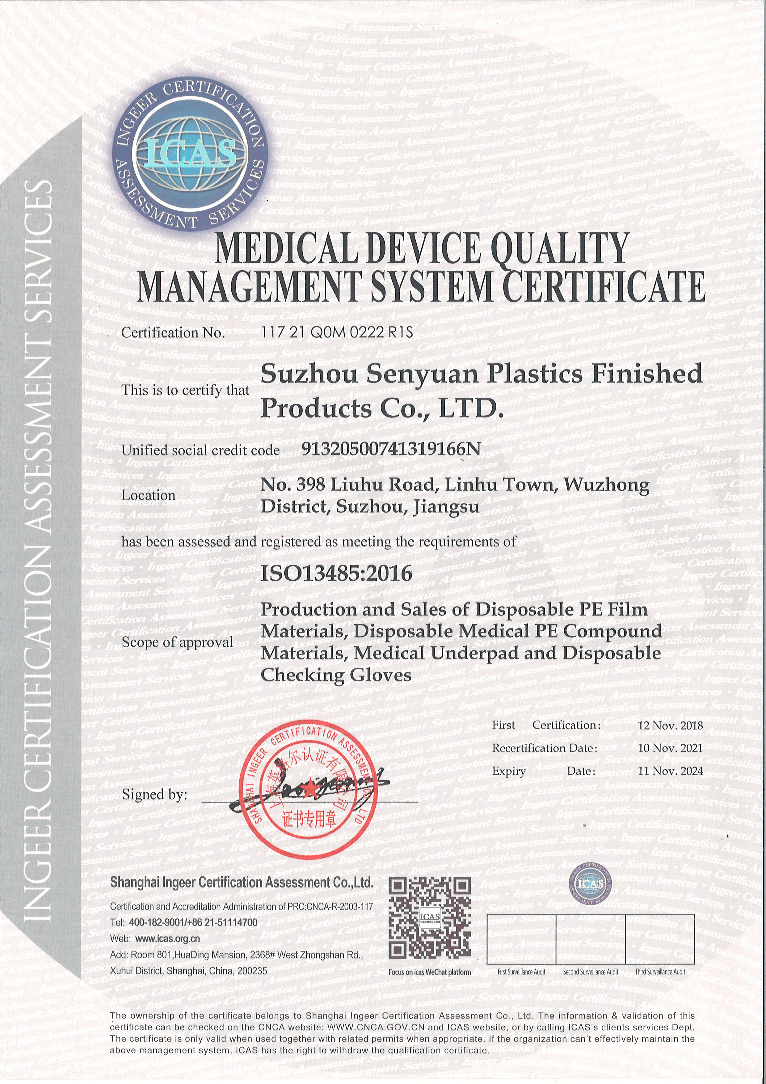 ISO মান ব্যবস্থাপনা সিস্টেম সার্টিফিকেশন 13485
